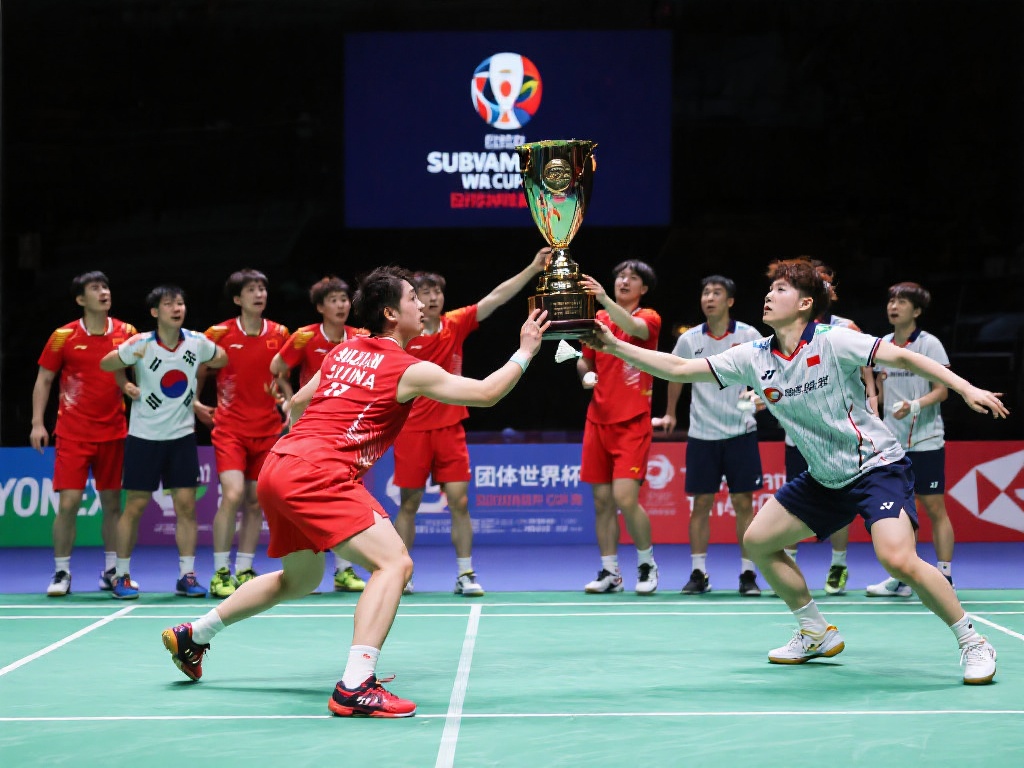 查看更多苏迪曼杯决赛:中国VS韩国 1 激情燃烧的羽毛球场,一场万众瞩目的对决即将展开。苏迪曼杯,中国VS韩国的巅峰之战,成为了众多体育爱好者的焦点。这不仅仅是两支顶级球队之间的较量,更是两国羽毛球精神与实